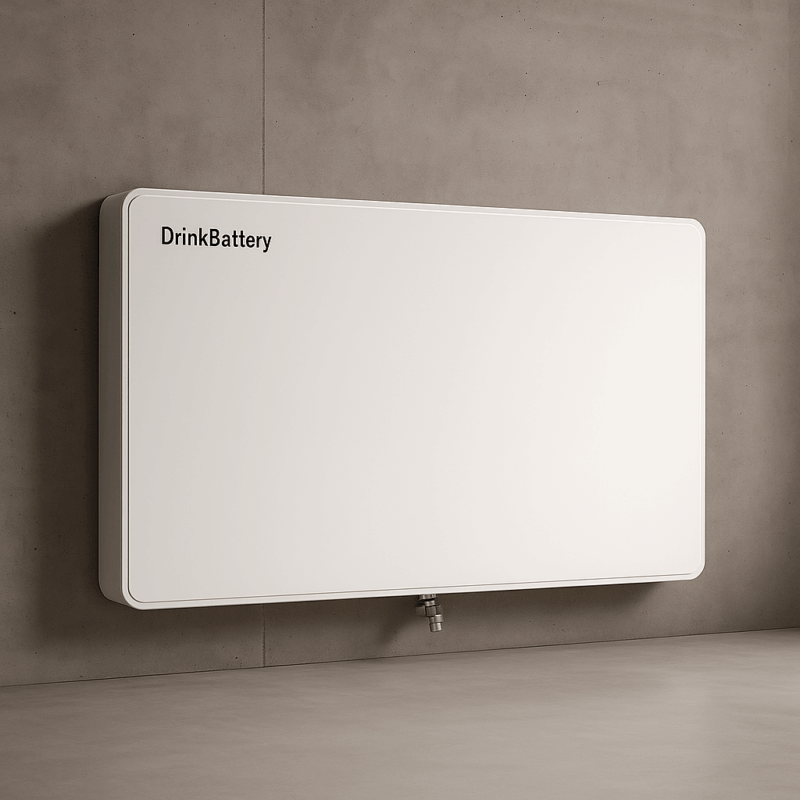 WDrinkBattery is designed as a sleek water backup you don’t notice—until you need it. Wall-mounted or placed neatly on the floor against a wall, it’s minimal and smart. No camping jug or bulky container in your hallway, just quiet certainty in your home.